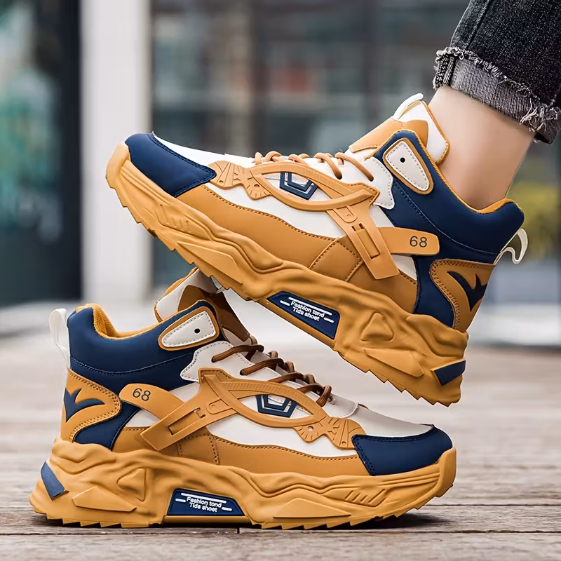 Men's High-Top Casual Sneakers - White & Blue Accents, PU Upper & EVA Cushioned Sole, All-Season Outdoor Hiking Shoes with Breathable Fabric Lining, Lace-Up Ankle Support for Urban Streetwear & Daily Wear